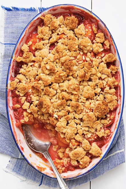 - Prepare the Fresh Fruit Crumble: Toss chopped fruit (whatever’s in season) with a little sugar.