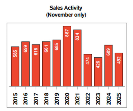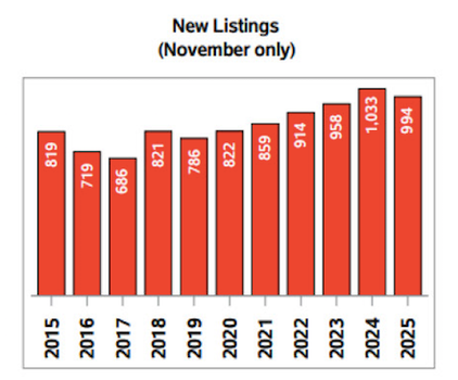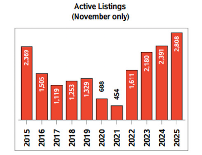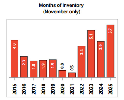 ago, but up 15.5% from November 2023.“Although down from the previous November, sales were on par with activity in the last four years,” said Dale Marsh, 2025 LSTAR Chair. “Based on the economic climate across the country and the uncertainty in the marketplace, many potential buyers remain on the sidelines. This is evident by the 5.7 months of inventory in November, which is the highest inventory level recorded in the month, over the past 10 years.”