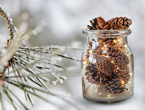 - Add pinecones, dried citrus slices, cinnamon sticks, or stones